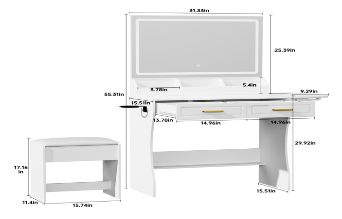 While natural light is excellent, adjustable lighting is key for early mornings or late-night touch-ups. A white dressing table with lights allows you to switch between different brightness levels depending on the time of day and your makeup needs. Soft, warm lights work well for everyday use, while brighter white lights are perfect for precise application.